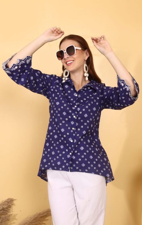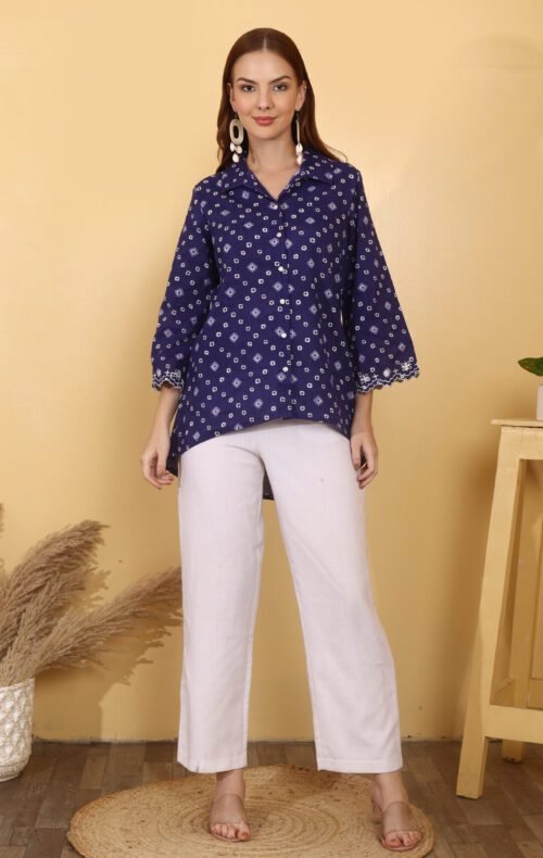*Indigo Bandhani Embroidered Cotton Shirt