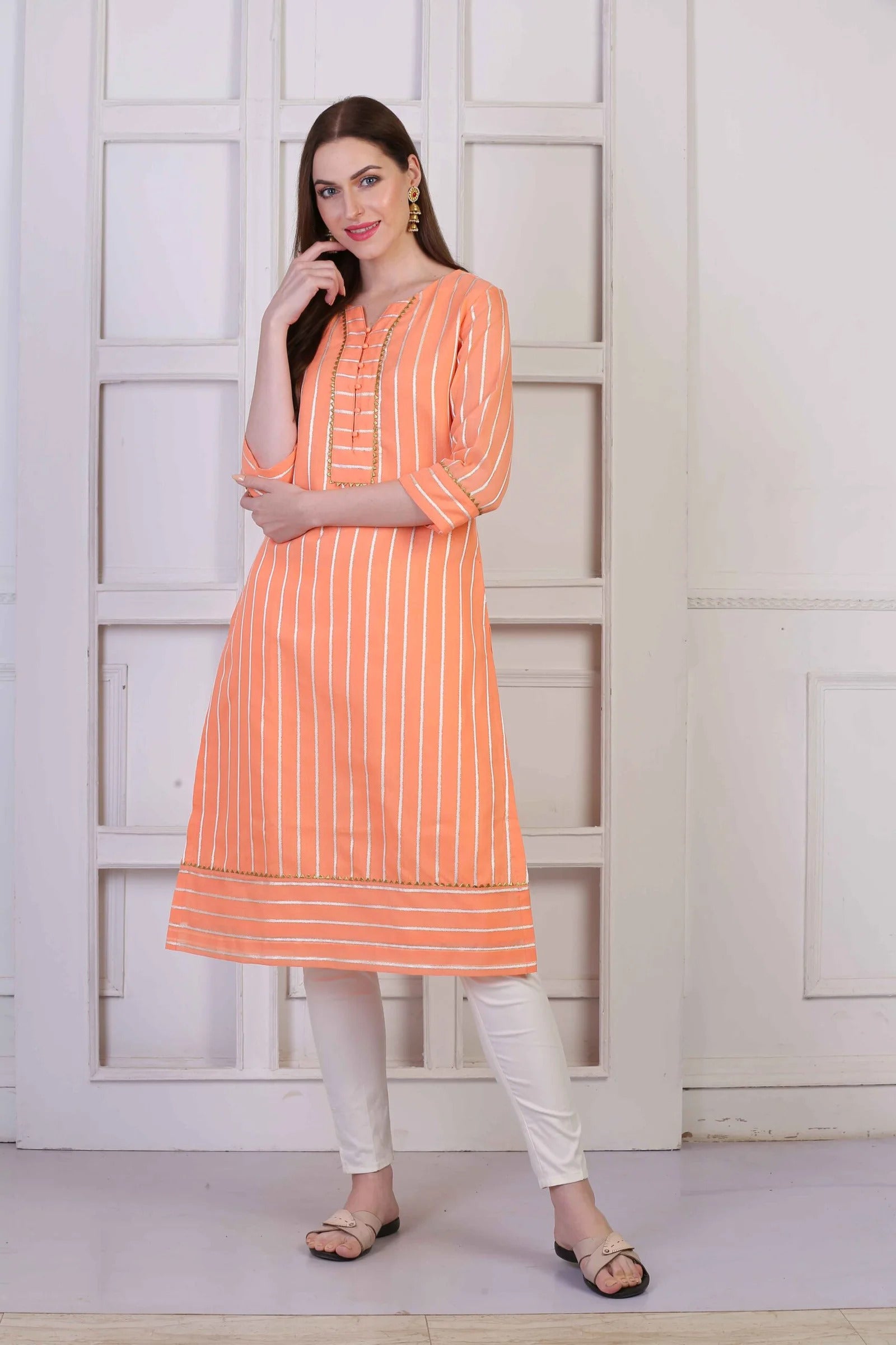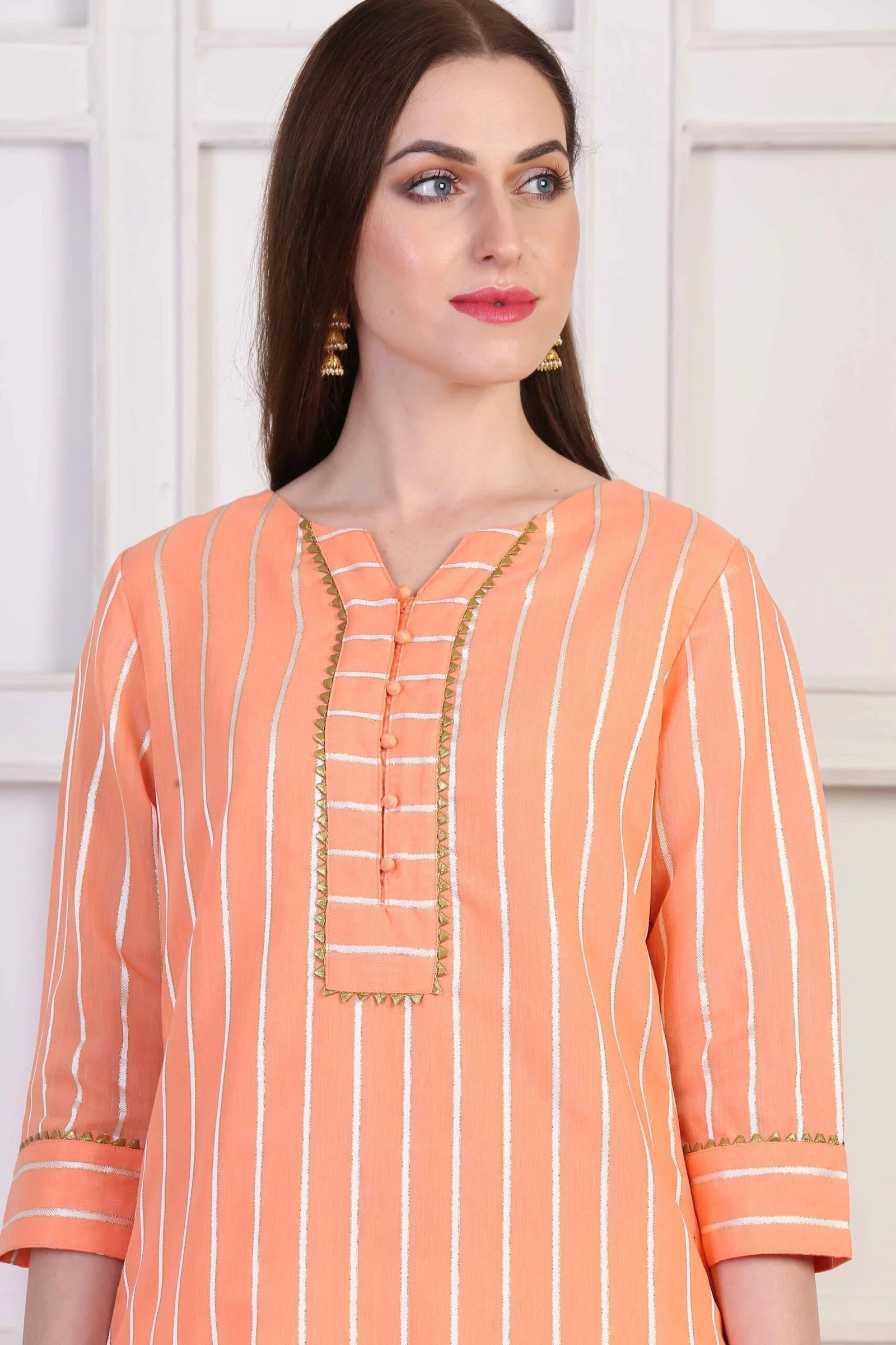 Peach Chanderi Straight Kurta