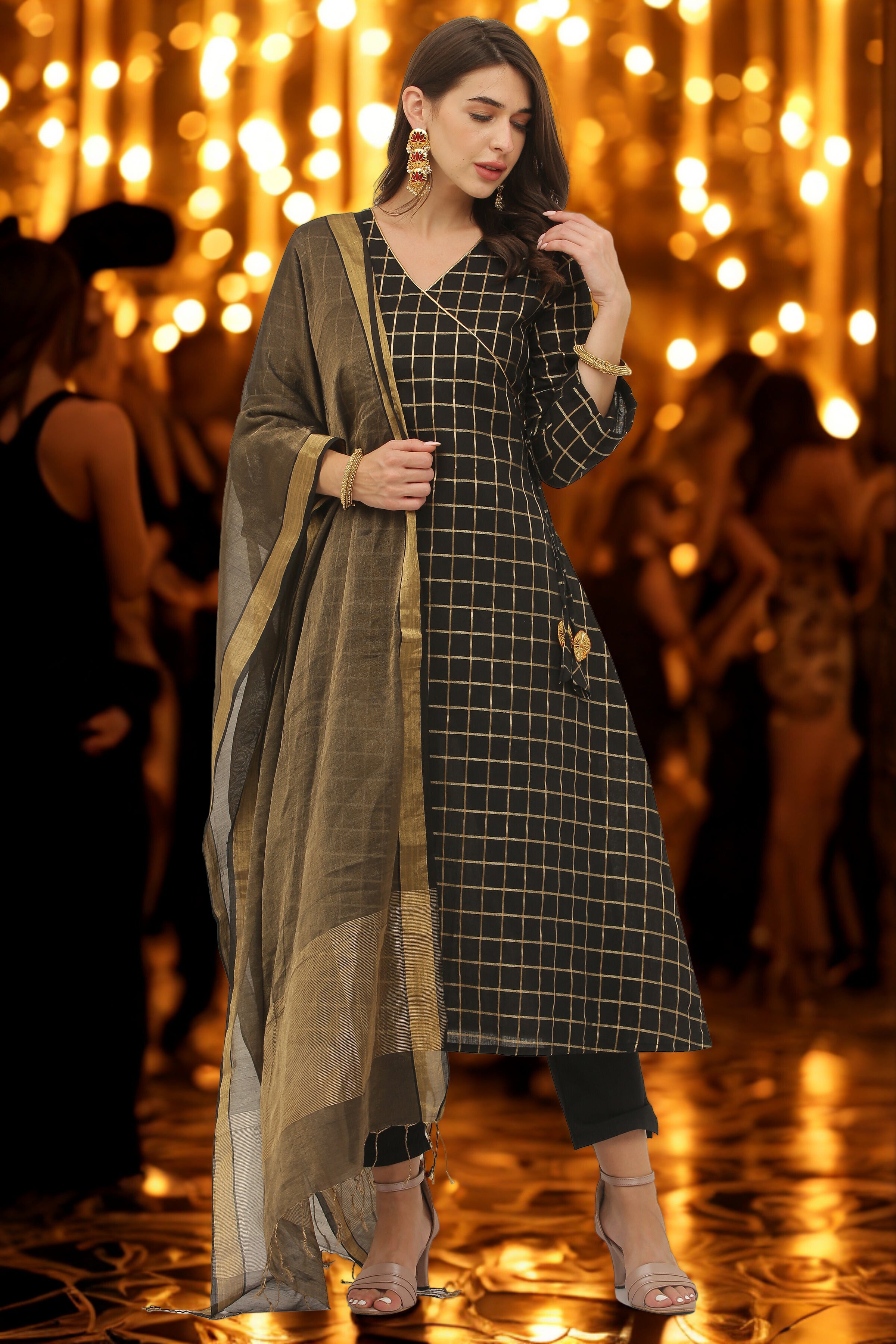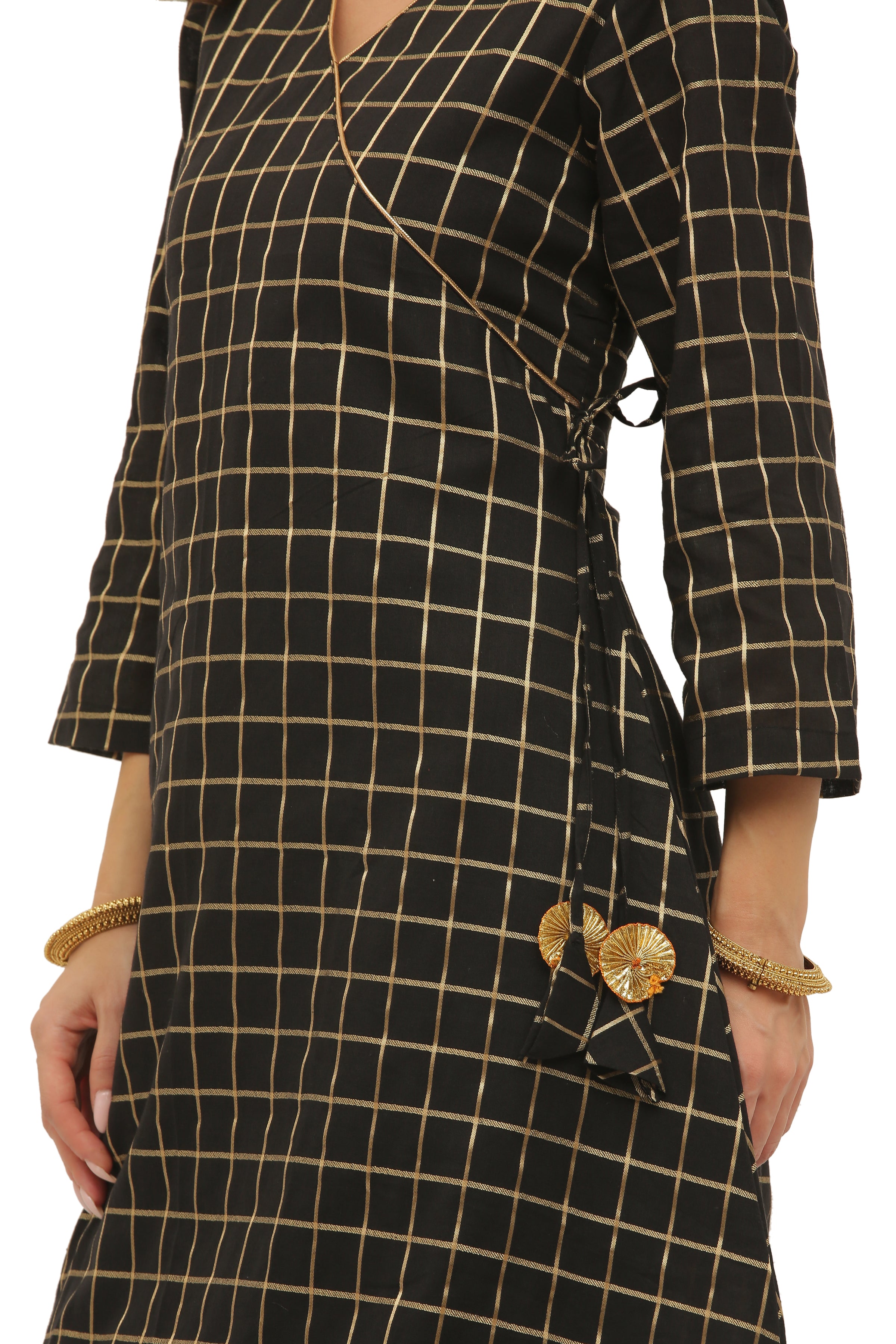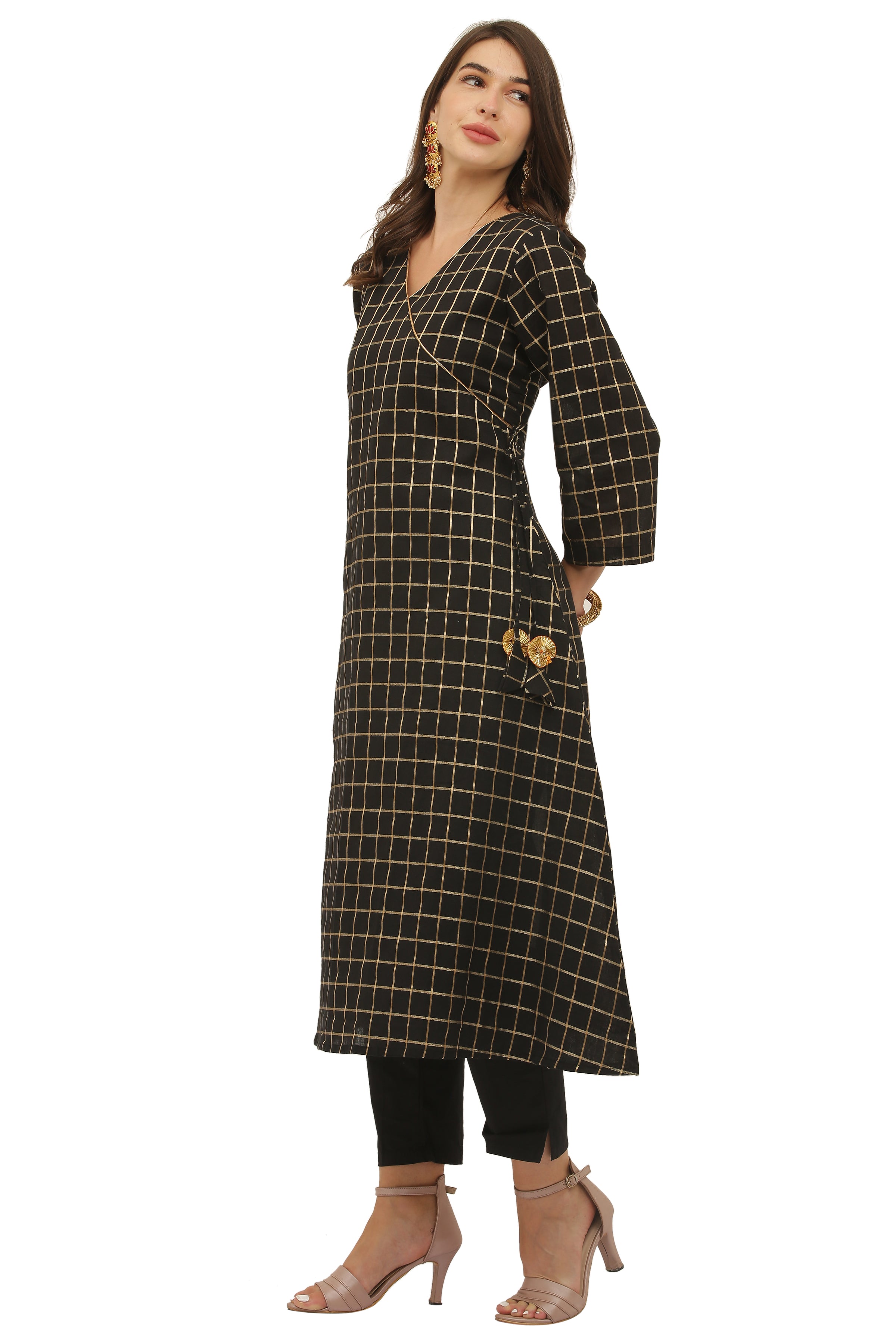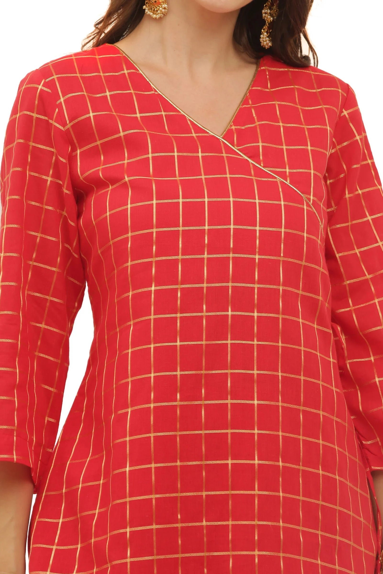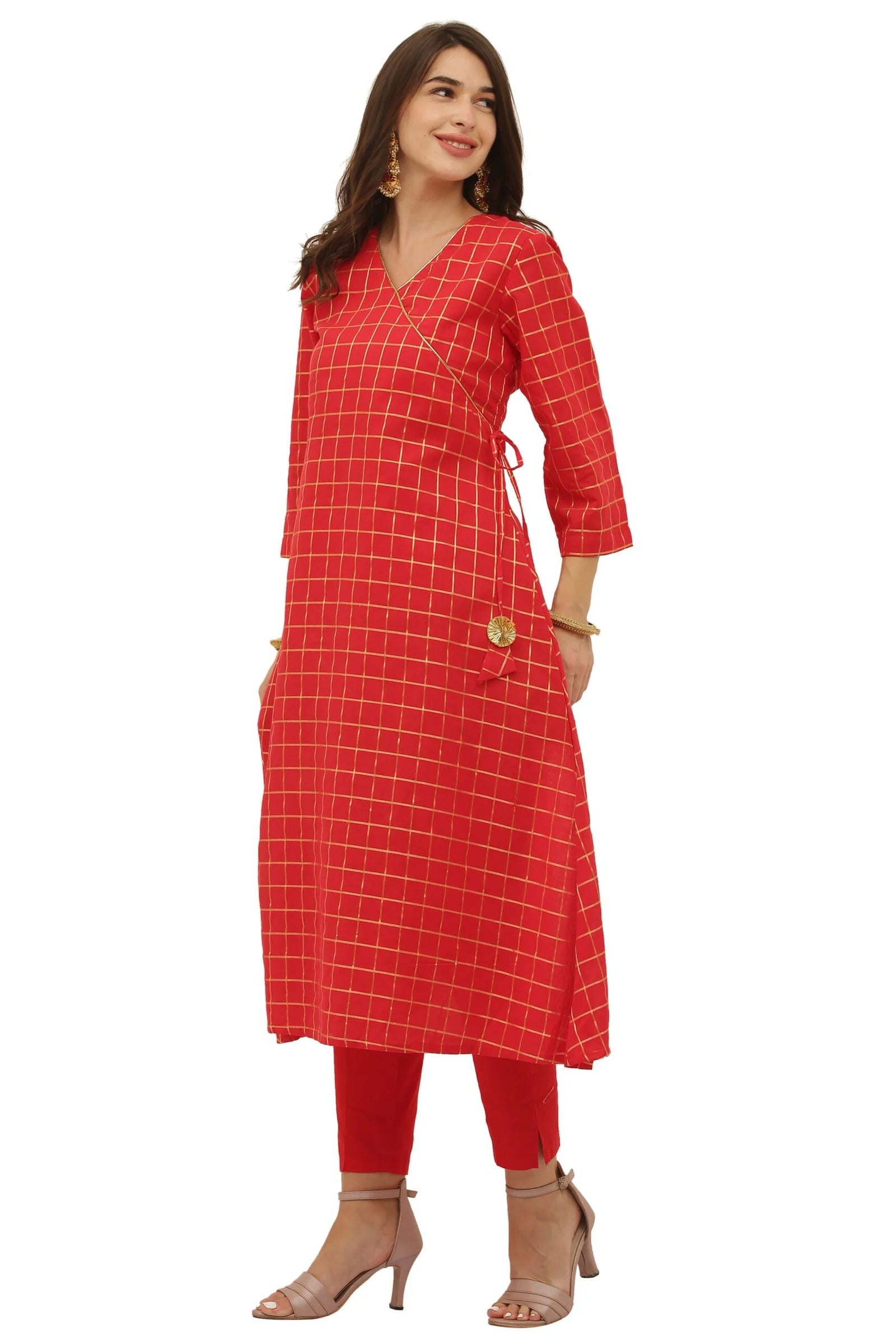 Red Cotton Angrakha Style Kurta