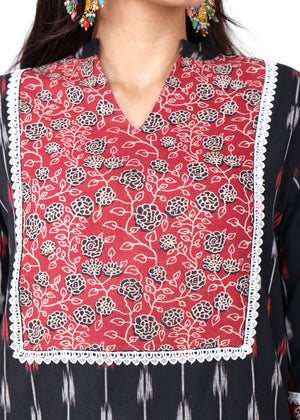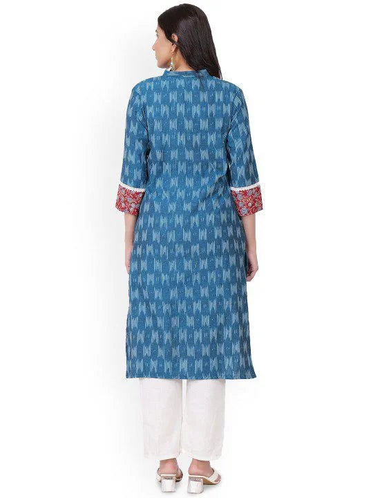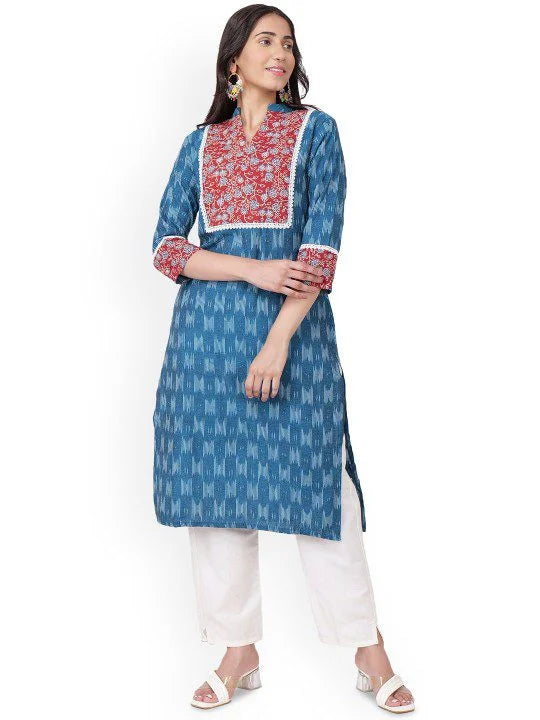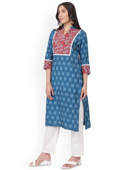 Ajrakh Yoke Blue Ikat Straight Kurta
