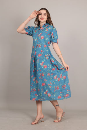 Ink Blue Cotton A-Line Maxi Dress