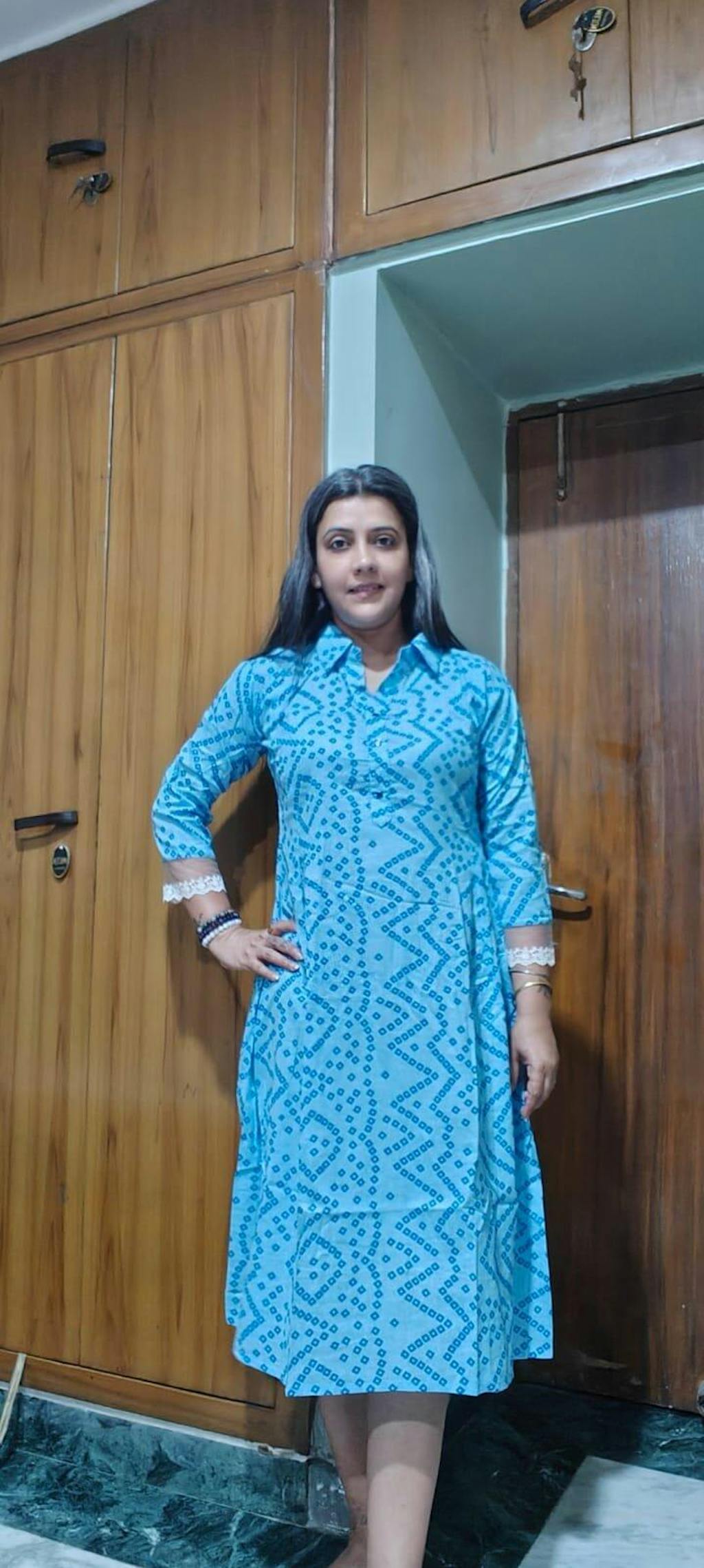 • 3/4 sleeves with Lace Detailing.