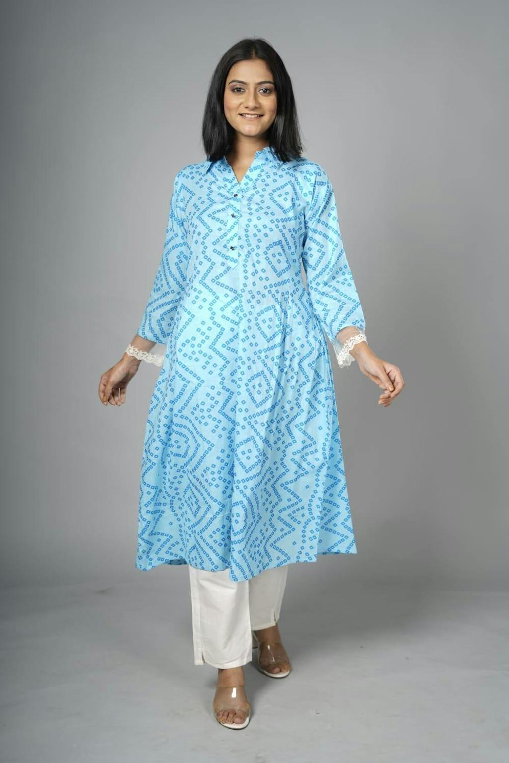 Cotton Bandhni A-Line Kurta cum Dress